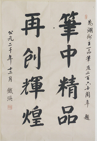 笔庄260周年店庆时中共浙江省委原第一书记铁瑛为笔庄题词